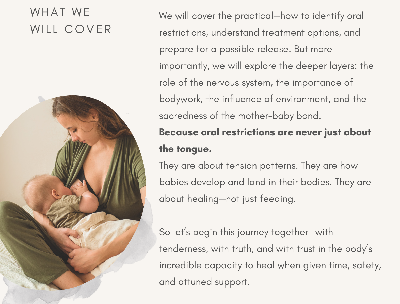 A trauma-informed, nervous system-rooted guide to oral restrictions, tongue ties, and feeding with ease.